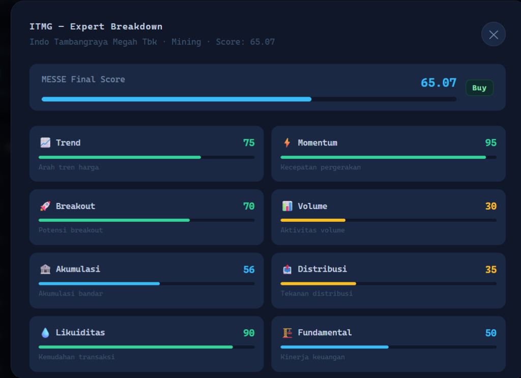 Di sinilah MESSE (Multi Expert Stock Scoring Engine) hadir sebagai pendekatan yang berbeda.